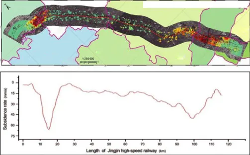 使用InSAR技术,对辖区内地面沉降状况进行监测分析,并对地面沉降的历史发展和变形趋势作出预测,预警地面沉降,同时结合智能硬件设备对预警地区的地面、房屋等重点监测,为辖区地面沉陷治理提供科学依据。